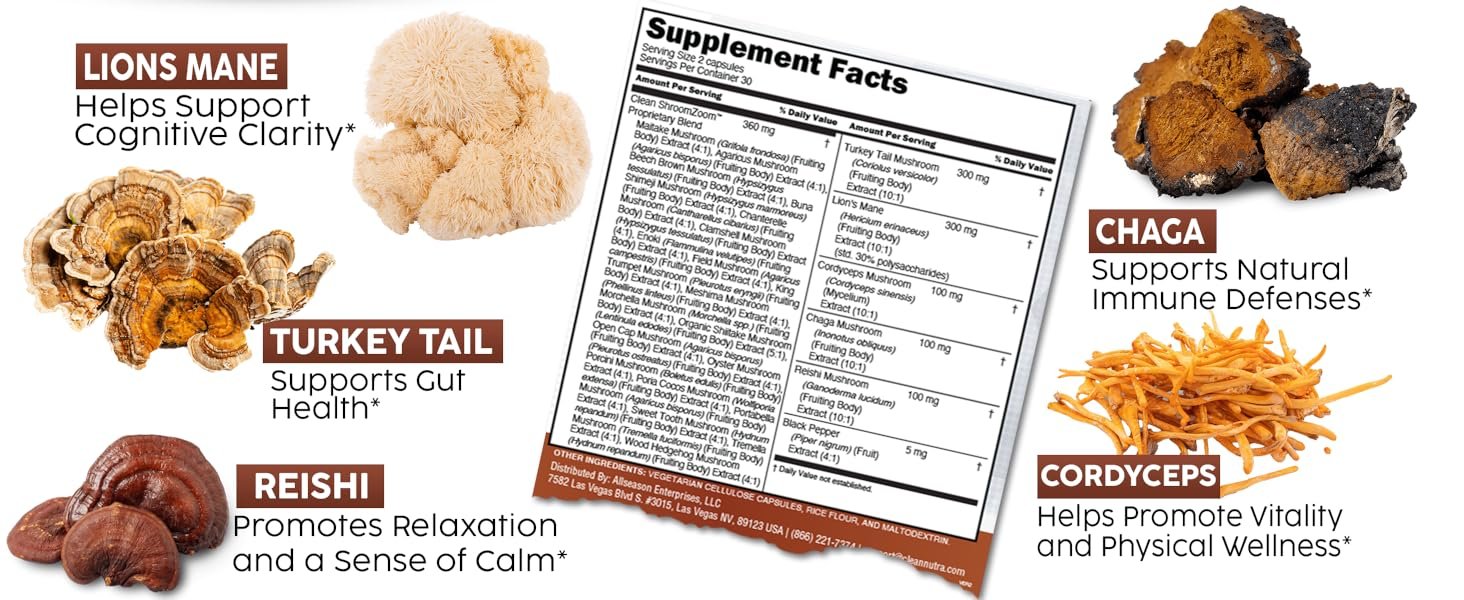containing a full lions mane powder, turkey tail mushroom powder, reishi mushroom extract, chaga powder, and cordyceps capsules in a convenient 2 capsule dosage! Finally, lions mane capsules, turkey tail mushrooms, reishi powder, and cordyceps mushroom powder have been packed into one convenient solution that’s easy to take.
