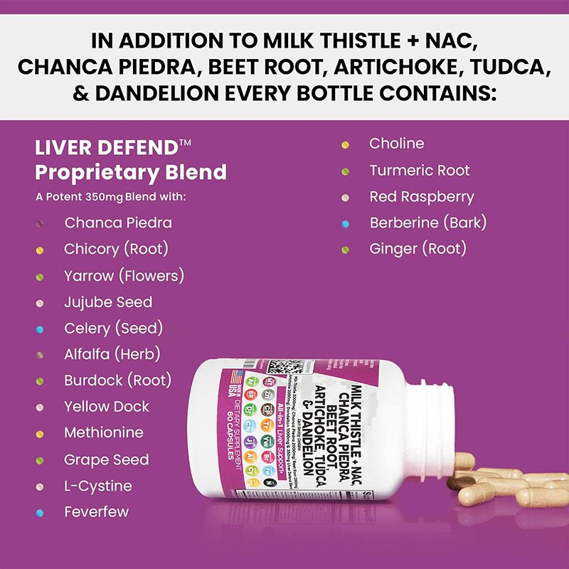 Powerful Liver Support Supplement — Packed with potent milk thistle, dandelion, beet root, artichoke and NAC. Replace multiple separate supplements including organic milk thistle, milk thistle tincture, N‑acetyl‑L‑cysteine, beet gummies and milk thistle gummies with one all‑inclusive liver detox supplement.