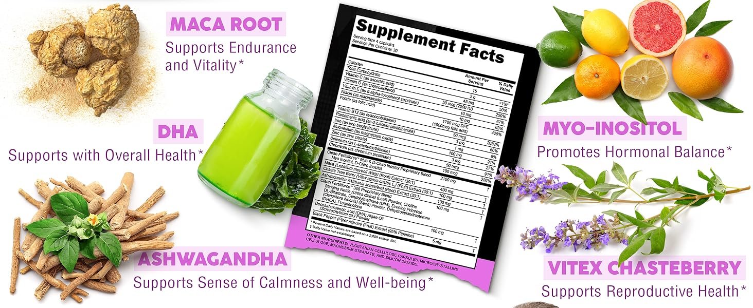 Crafted with a potent, synergistic formula featuring Myo-Inositol, D-Chiro Inositol, Vitex Chasteberry, Maca Root, Ashwagandha, and DHA—expertly combined to deliver holistic support for overall health and wellness.